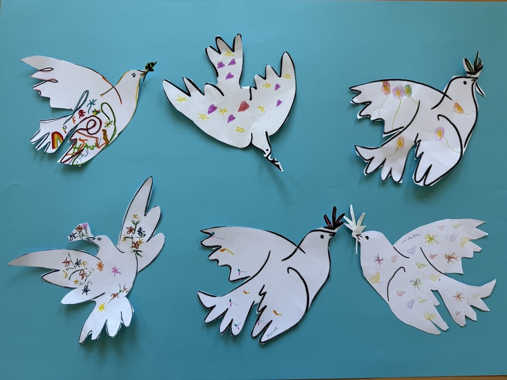 Friedenstauben nach Picasso (gestaltet von Kindern der Klasse 3b)