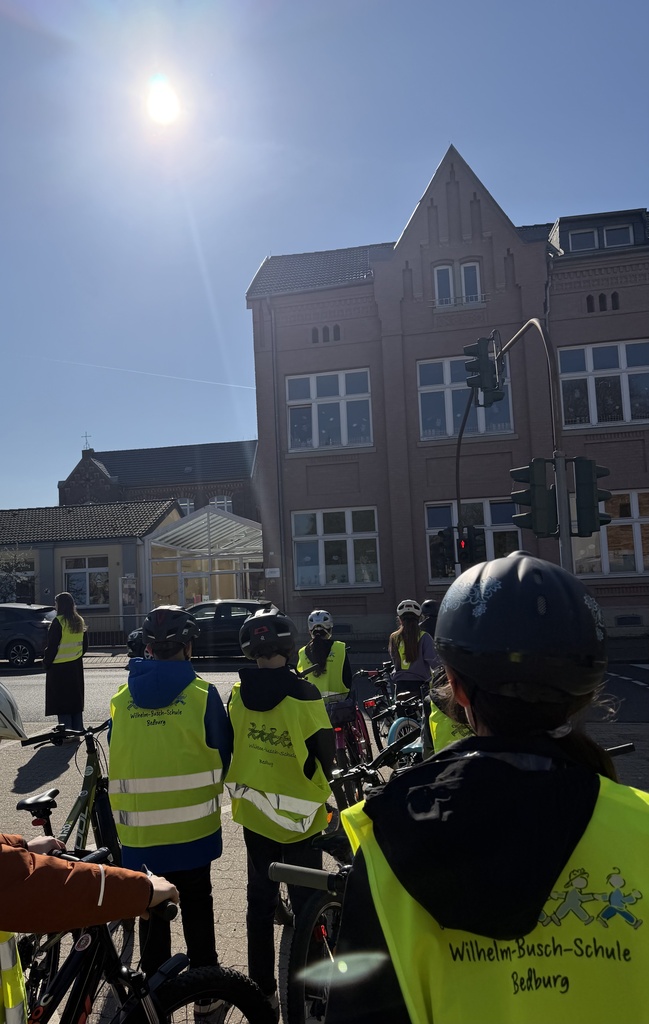 Auf den Straßen rund um die WBS üben unsere Kinder der Jahrgangsstufe 4 fleißig im Rahmen des Radfahrtrainings. Links abbiegen, Vorfahrt achten und sich sicher im Straßenverkehr verhalten: begleitet von unserer Polizistin Frau Labudda, den Klassenlehrerinnen und vielen helfenden Eltern haben das alle Kinder trainiert. Ein herzliches DANKESCHÖN allen Helfenden!!