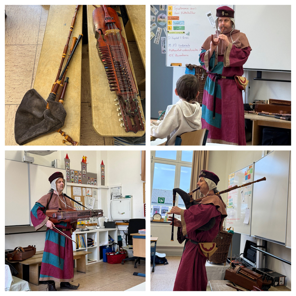 Besuch vom Spielmann! Unsere Kinder der dritten Schuljahre lesen momentan "Der Meisterdieb" von Fabian Lenk als Klassenlektüre. Passend dazu lernen die Kinder fleißig spannende Dinge rund um das Mittelalter. Nun war sogar ein Spielmann zu Gast: