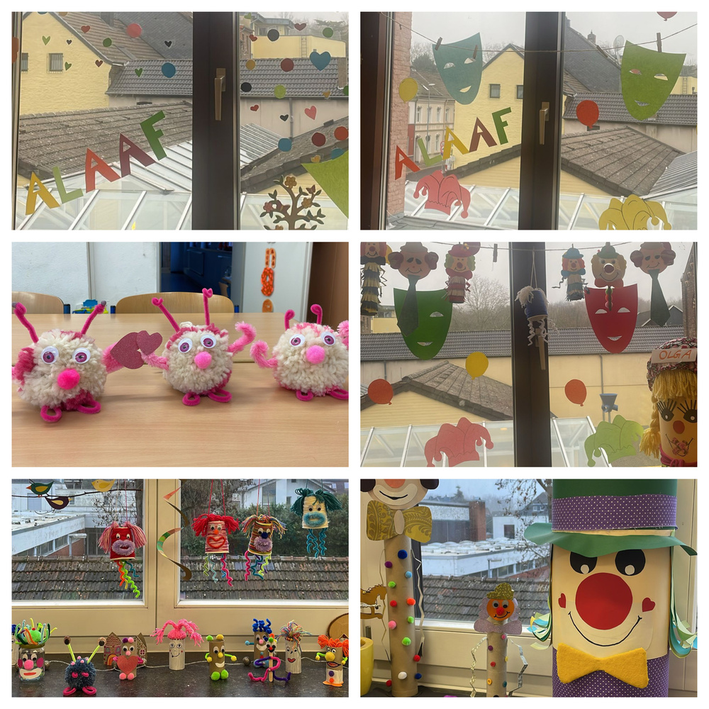 Unsere Kinder proben vergnügt für die Karnevalssitzung und das Team Nachmittag hat schon fleißig bunte und fröhliche Dekoration für unsere Gruppenräume gebastelt.