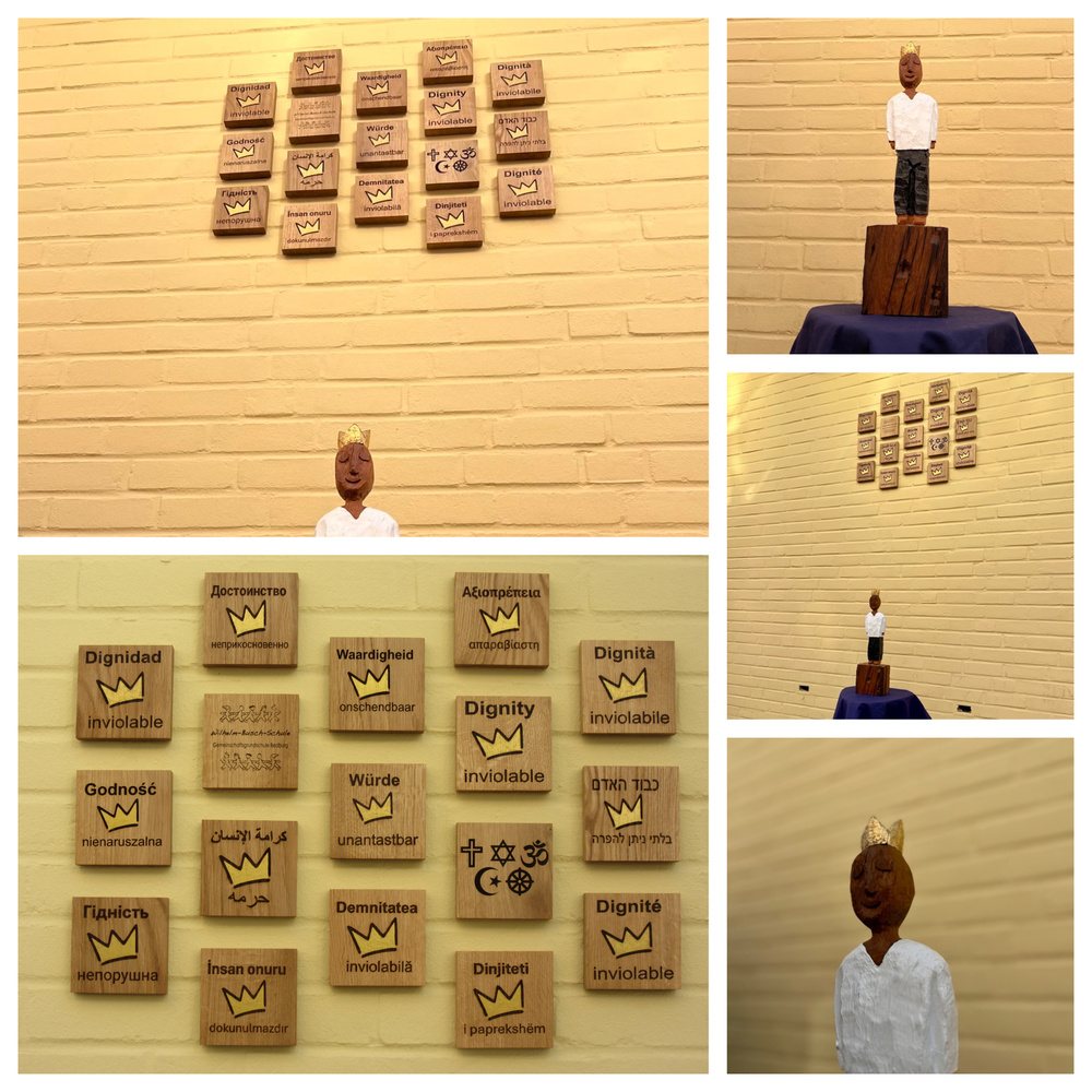 In Holztafeln werden die Worte Würde unantastbar und eine goldene Krone eingebrannt. Diese Würdetafeln sollen alle Menschen daran erinnern, sich gegenseitig mit Respekt zu begegnen und die Würde anderer Menschen zu achten. An vielen Orten findet man solche Würdetafeln schon.