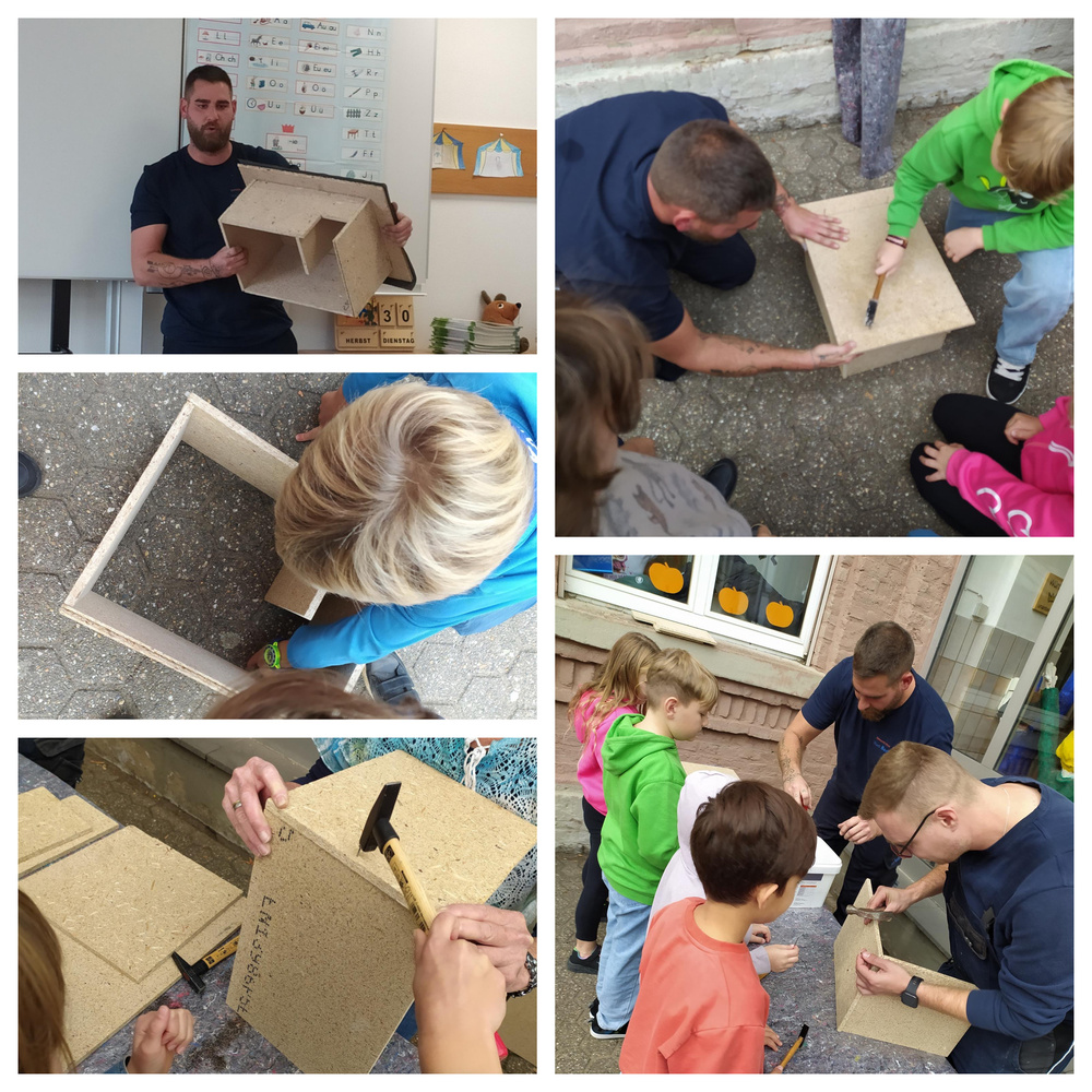 Die Idee: Igelhotels sollten gebaut werden! Denn diese können Igeln in der kalten Jahreszeit dabei helfen, sich zu wärmen und sicheren Schutz während ihres Winterschlafes zu finden. Die Stadt Bedburg hat für dieses Projekt sofort grünes Licht gegeben. Igelhotels bauen? Für diese Idee waren auch die Kinder der Garten-AG der Wilhelm-Busch-Schule sofort Feuer und Flamme! Und so ging es angeleitet durch die beiden Naturfreunde Boving und Rixen und ihre Lehrerin hochmotiviert ans Werk, es wurde fleißig gehämmert und gezimmert und so entstanden zehn gemütliche Igelhotels. Das Material hierfür wurde durch den Baumarkt Mobau gespendet. Gemeinsam mit den Erwachsenen stellen die Kinder die Igelhotels nun am Freibad, im Schulumfeld und Schlosspark auf.