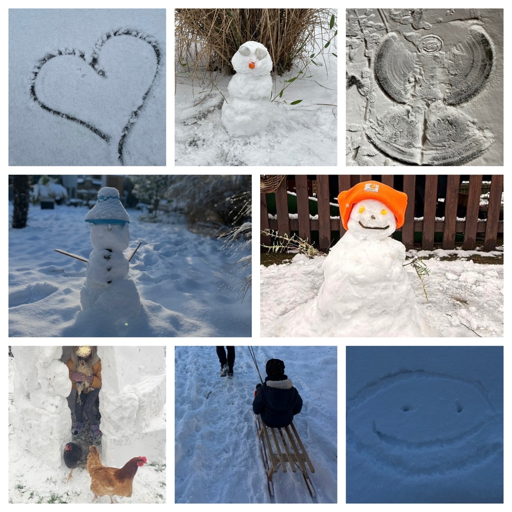 Schneefreude im Januar: Ob Schneeherz, Schneeengel, Schneesmiley, Schneeiglu, Schneemann, Schlittenfahrt und Schneeballschlacht oder Schnee-Herr-Reelfs: Unsere Kinder hatten viel Freude im Schnee! Danke für das Teilen eurer schönen Schneeerlebnisse mit uns!
